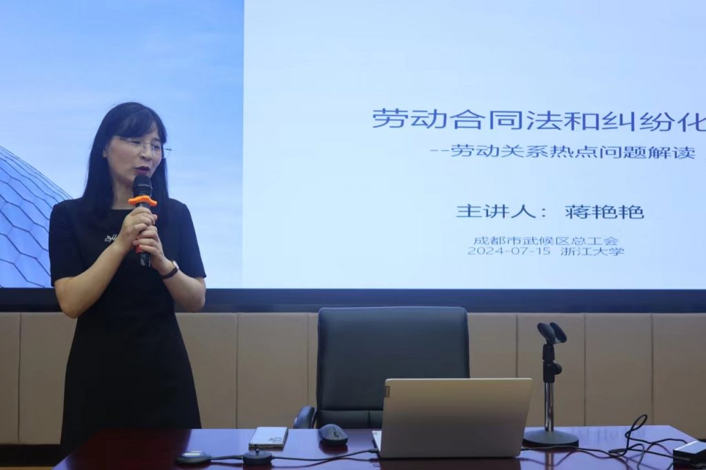 蒋艳艳律师受邀为四川省成都市武候区工会系统干部作劳动关系热点问题的授课分享 时间:2024-07-15 7月15日上午,我所蒋艳艳律师受浙江大学邀请在武候区工会系统干部综合素质提升培训班上,为参训的干部们作《劳动合同法和纠纷化解——劳动关系热点问题解读》的授课。 蒋艳艳律师通过“以案释法”的形式,讲述了劳动法律渊源、劳动关系建立纠纷热点、劳动合同履行纠纷热点、劳动合同解除纠纷热点等内容,使得参训人员系统掌握劳动用工有关法律规定及实务操作方法,帮助企业工会工作者提升对劳动合同法律法规的掌握。在互动环节,学员们积极参与、各抒己见,现场气氛轻松活跃。参训工会干部表示,蒋律师采用法律法规讲解与案例分析相结合的方式授课,重点突出、条理清晰、内容详实,让学员更加有代入感,对今后如何服务好职工给予了具体指导,收获颇丰。
