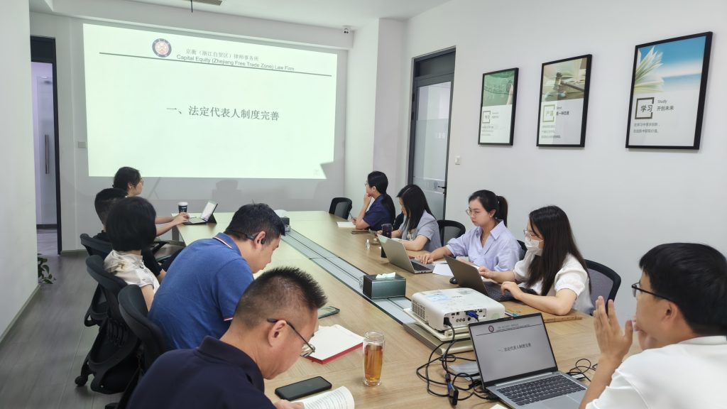 京衡浙江自贸区所开展2024年第四期“京衡课堂”学习活动 时间:2024-07-26 7月26日下午,京衡浙江自贸区所开展了2024年第四期“京衡课堂”学习活动。本次学习内容为新《公司法》中公司治理相关内容变化,由胡增杰律师主讲,所内执业律师和实习律师参与学习。胡增杰律师根据新《公司法》相关内容变化,紧紧围绕新《公司法》修订背景、修订意义、修订重点、注册资本实缴等内容进行了讲解,结合《民法典》相关法律规定、热点问题以及学者学理解读,为本所律师深入浅出地讲解了新《公司法》中公司治理相关内容变化。在场律师结合日常办案中遇到的相关法律问题和自身办案经验进行热烈的讨论,互相分享交流学习心得。本次学习,增强了京衡律师的专业知识与实践能力,促使本所律师在今后办理相关案件时为当事人提供更加规范高效的法律服务。