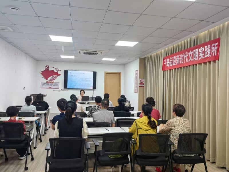 京衡浙江自贸区所李遇蓝律师应邀为合兴社区开展反家庭暴力法治讲座 时间:2024-07-31 为倡导科学的家庭成长理念,促进家庭健康成长,舟山市人民政府妇女儿童工作委员会办公室组建“舟山市家庭成长讲师团”,本所李遇蓝律师有幸入选为“舟山市家庭成长讲师团”成员。2024年7月31日,李遇蓝律师应邀为临城街道合兴社区开展反家庭暴力法治讲座,为社区工作人员和社区居民讲解了家庭暴力的相关法律规定,以及在遭遇家庭暴力后如何自救与维权,并着重倡导构建互相尊重、互相关爱、平等和睦的家庭美德,树立文明新风。本次讲座李遇蓝律师采用理论结合实务的方式,详细讲解分析了七类代表性的家庭暴力案例,现场气氛十分热烈,互动活跃度极高,获得了良好的授课效果。
