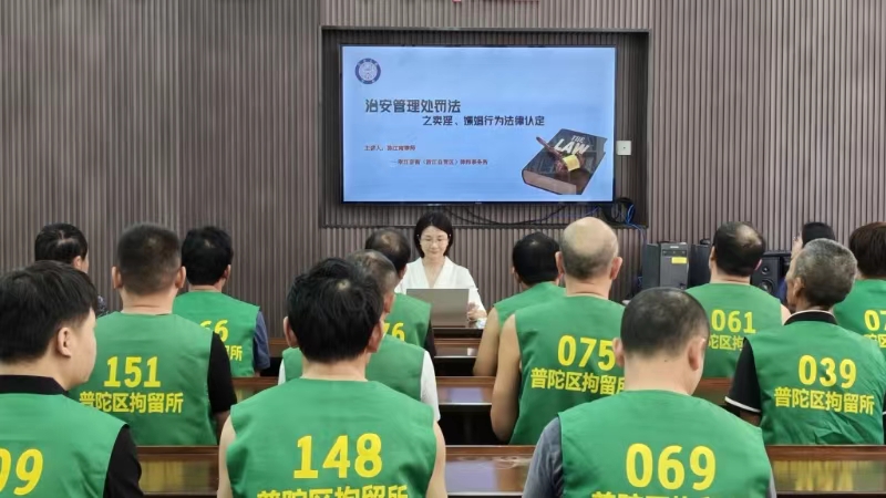 京衡浙江自贸区所陈江南律师受邀为普陀区拘留所开展普法宣讲 时间:2024-08-02 8月2日上午,陈江南律师受邀为普陀区拘留所在拘人员开展《治安管理处罚法》之卖淫、嫖娼行为法律认定的普法宣讲。《中华人民共和国治安管理处罚法》作为以“保障公共安全,保护公民、法人和其他组织的合法权益”为基本法律,最贴近我们的生活。陈江南律师结合社会热点案例,通过《治安管理处罚法》中对于卖淫嫖娼的相关法律规定解析,给在拘人员上了一堂生动、严肃的重塑人生、知错改错的教育课。通过本次普法宣讲,希望可以进一步增强在拘人员的法治意识,重新审视并规范自身行为,加深对违法的危害及严重法律后果的认识,从而最大程度地消除其违法行为造成的社会不和谐因素。