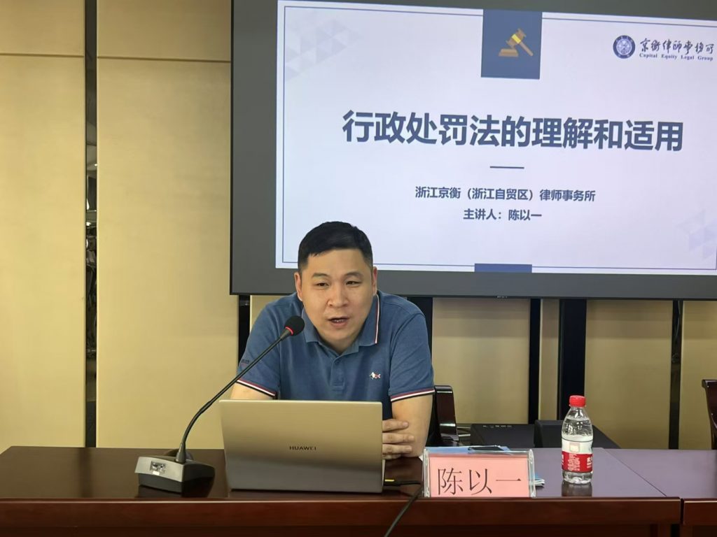 京衡浙江自贸区所陈以一律师应邀为舟山市海洋经济发展局开展行政处罚法专题讲座 时间:2024-09-11 2024年9月9日下午,本所陈以一律师受舟山市海洋经济发展局邀请,为全市海洋经济发展系统年轻干部业务能力提升培训班作《行政处罚法的理解和适用》专题讲座。讲课过程中,陈律师解读了新修订的行政处罚法亮点,强调了执法人员实施行政处罚过程中需要注意的相关事项,如追溯期间、裁量基准、一事不二罚的限制适用、保障当事人的合法权益以及依法履行告知当事人陈述、申辩、听证等程序义务等。陈律师重点围绕渔业处罚相关案例详细地分析了行政机关在执法过程中存在的问题,强调行政处罚证据的重要性以及程序的合法性。此次讲座内容立足于实际案例,结合相关法律法规,针对海洋经济发展系统所涉行政处罚进行了详细分析,兼具理论性和实用性,有利于促进公正文明执法。