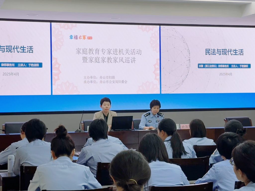 于艳律师受邀为舟山市公安局授课 时间:2025-04-28 2025年4月28日上午,京衡(浙江自贸区)律师事务所于艳律师应舟山市公安局邀请,在”家庭教育专家进机关活动暨家庭家教家风巡讲”中开展专题法律授课。本次活动共有三十余名女警官参与,取得良好反响。于艳律师立足专业实务经验,从法典概况、立法要义、亮点解析三个维度,系统讲解了《民法典》婚姻家庭编与继承编的核心内容。课程重点解读了夫妻共同财产分割规则、代位继承实务应用、各类遗嘱形式优劣比较等热点问题,通过典型案例与法条相结合的授课方式,使抽象的法律规定变得生动易懂。培训现场互动热烈,参训警官围绕案例展开深入讨论。课程结束时,学员们纷纷表示此次培训内容详实、实用性强,对日常工作生活具有重要指导意义,期待后续开展更多专题学习。