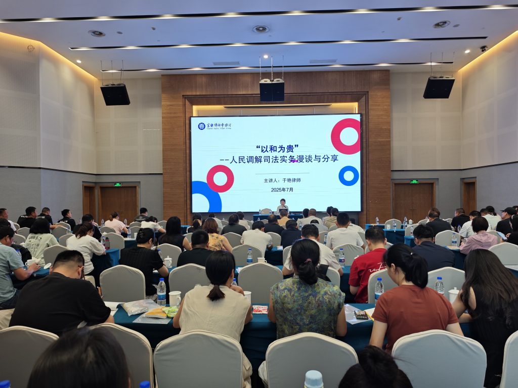 于艳律师为舟山市司法局开展人民调解实务专题授课 时间:2025-07-23 2025年7月23日上午,京衡浙江自贸区所于艳律师受邀,为舟山市司法局开展“‘以和为贵’人民调解员司法实务漫谈与分享”的专业授课,本次授课由舟山市各司法局行政人员及人民调解员参与,获得了较好的授课效果。在本次授课中,针对调解员日常工作中的常见痛点,于艳律师以“民间借贷纠纷”“租赁合同纠纷”“劳动争议纠纷”“安全保障责任纠纷”等典型案例为引,系统梳理了调解程序规范、证据固定技巧、心理疏导策略及文书制作要点,特别强调调解员需具备“三心二意”——耐心倾听、公心处事、细心观察,强化法律意识与风险防范意识。现场互动环节中,调解员们踊跃提问,就“调解协议效力保障”“群体性纠纷处置”等实务问题展开热烈讨论。本次授课圆满结束,参训调解员纷纷表示,此次授课内容兼具理论高度与实践深度,既增强了法律素养,又拓宽了调解思路。
