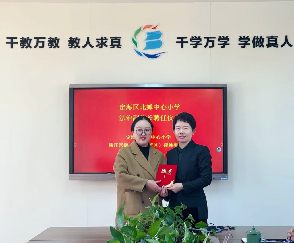 在第12个国家宪法日即将到来之际,2025年12月4日下午,舟山市定海区北蝉中心小学举行法治副校长聘任仪式,正式聘请我所副主任于艳律师担任该校法治副校长。本次聘任由定海区司法局白泉司法所与定海区北蝉中心小学共同发起,旨在通过专业法律力量加强校园法治建设,护航未成年人健康成长。
